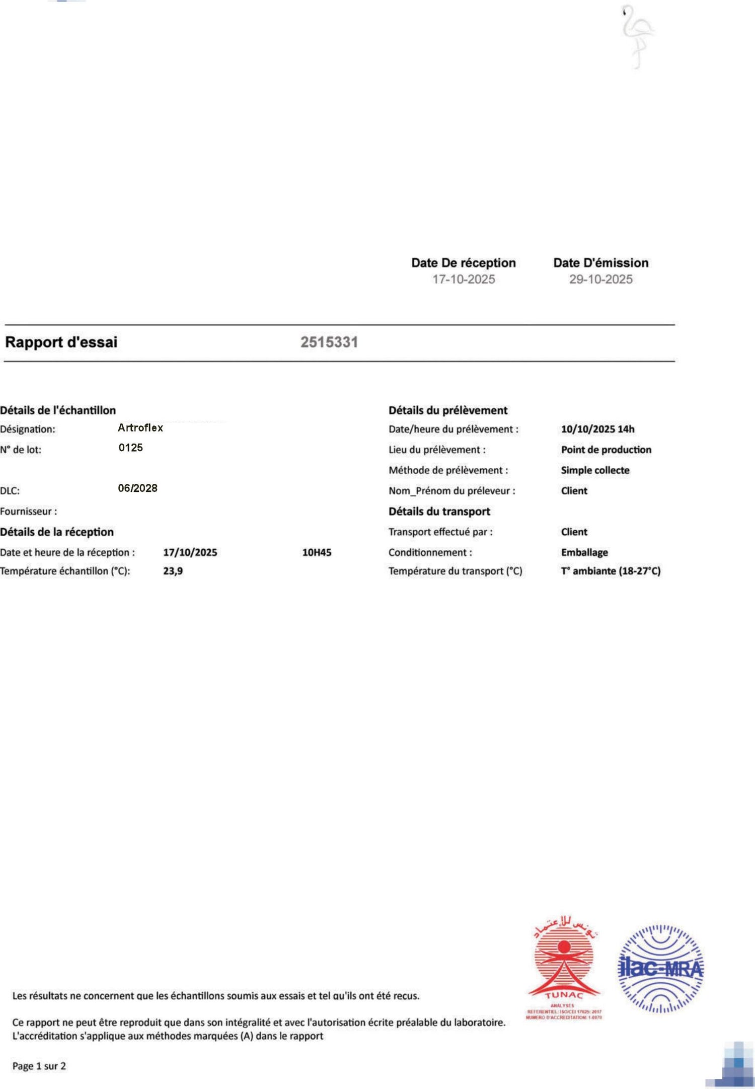 لضمان أعلى معايير السلامة والفعالية، يخضع لسلسلة دقيقة من الاختبارات المخبرية في مخابر معتمدة. نحن نؤمن أن ثقة العميل تبدأ من الشفافية، لذلك نوفر لك جميع الشهادات الرسمية التي تثبت جودة المكوّنات، نقاء الصيغة، واحترام المعايير الدولية في التصنيع.